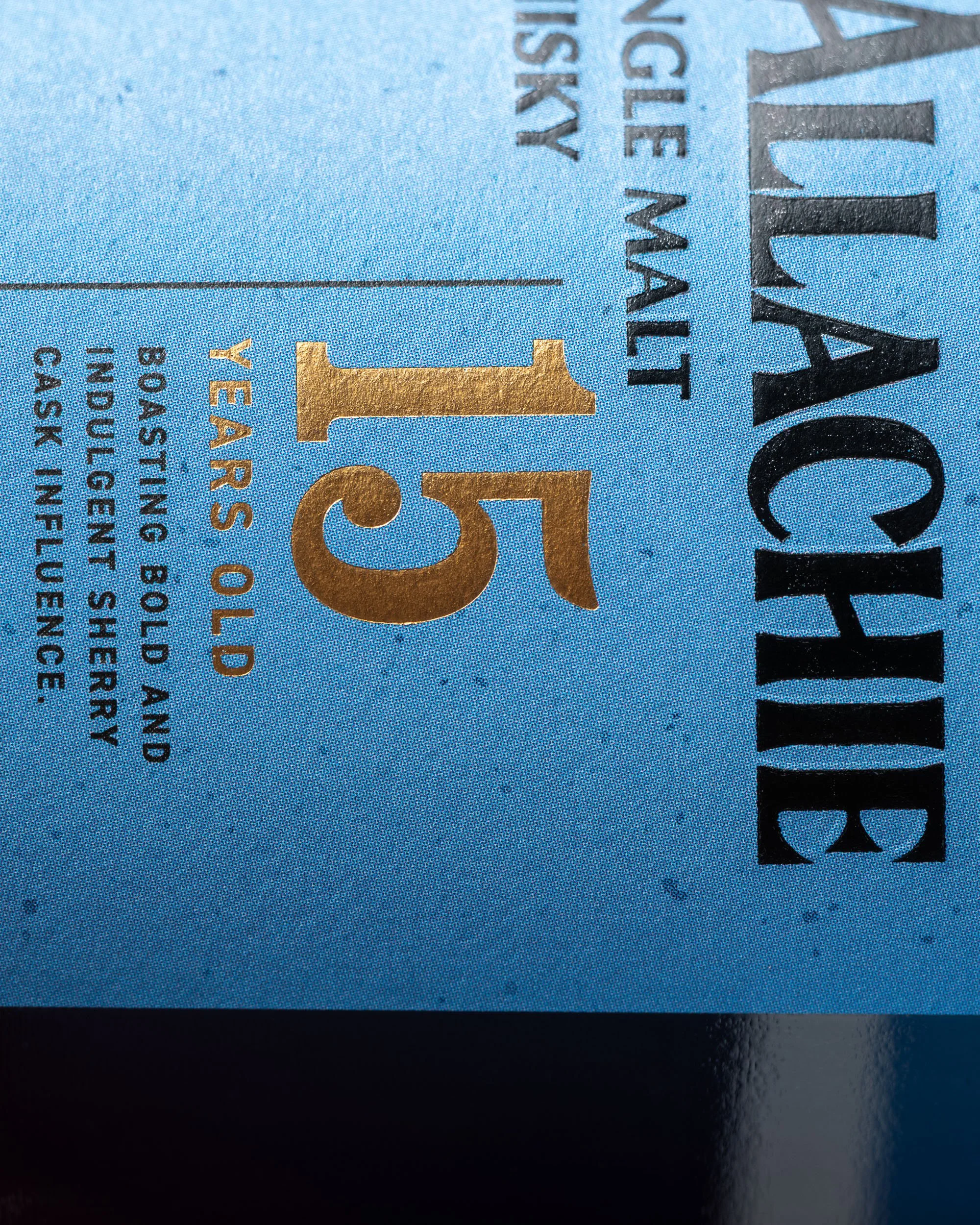 GlenAllachie updated their bottle design in 2024, and it's a classy affair. The bottle has a good weight to it, with clean lines and a label that manages to be information-rich without feeling cluttered. The label itself has an attractive design with subtle flecks of darker blue that add visual interest without being over the top. It's modern without trying to be flashy and it's confident enough to let the whisky do the talking.